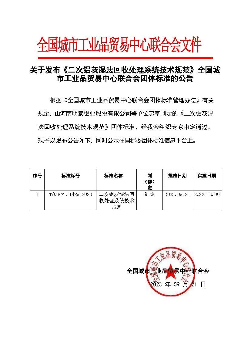 近日,由河南明泰鋁業(yè)股份有限公司牽頭編制的《二次鋁灰濕法回收處理系統(tǒng)技術(shù)規(guī)范》、《食品容器用再生鋁合金箔》2項團體標準順利通過專家評定,獲得批準發(fā)布。這是公司以技術(shù)難點突破為手段,破解行業(yè)共性問題、推進鋁加工行業(yè)質(zhì)量提升建設(shè)所結(jié)出的最新碩果。